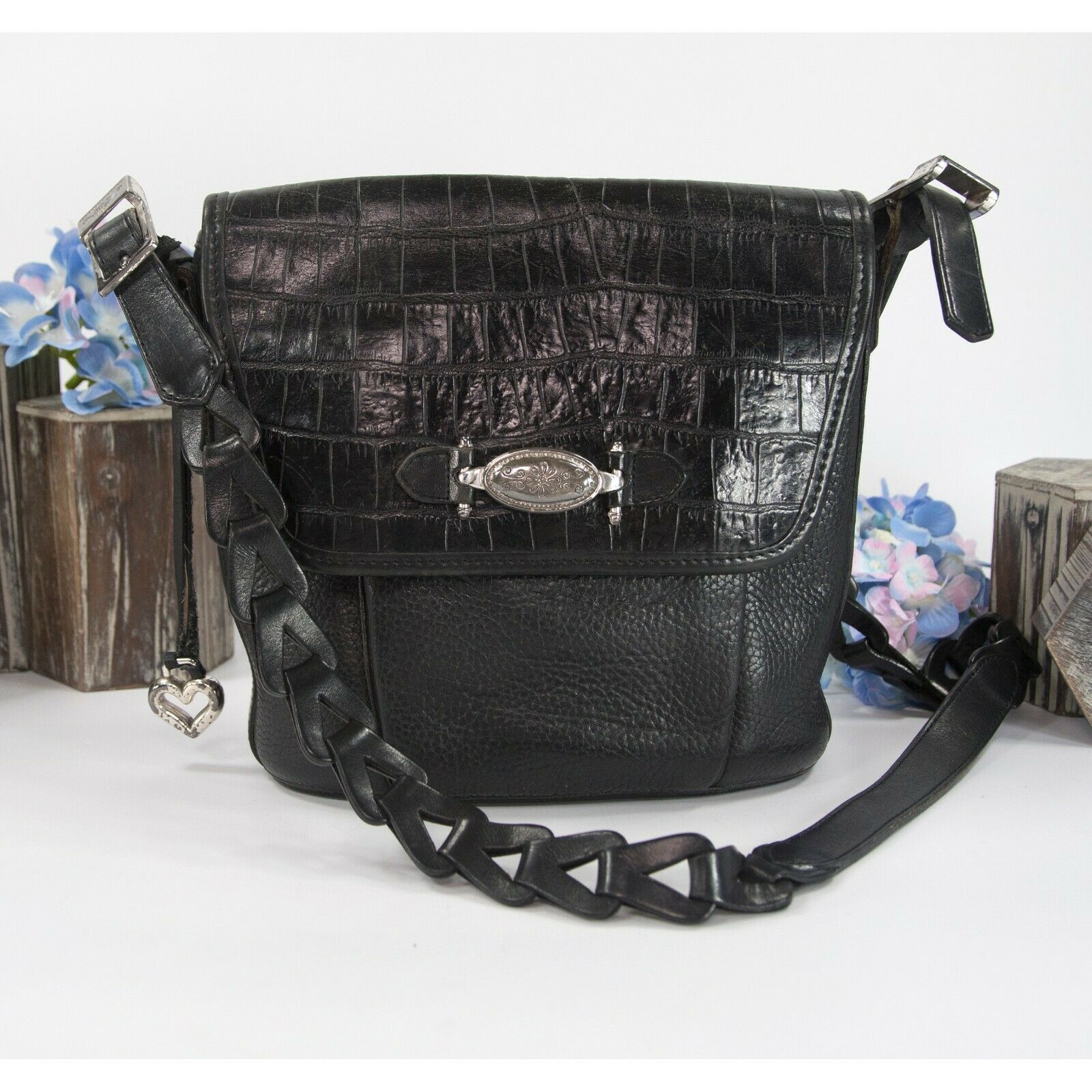 Brighton Black Croco Leather Crossbody Bucket Bag NWT