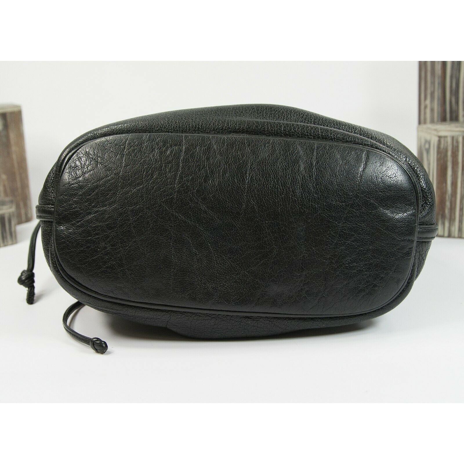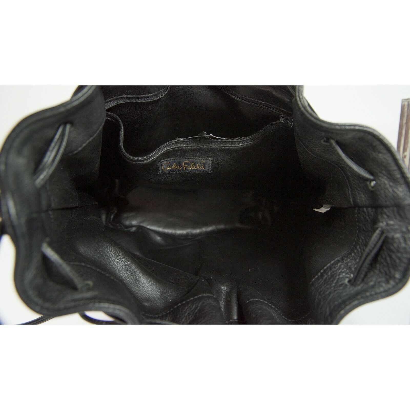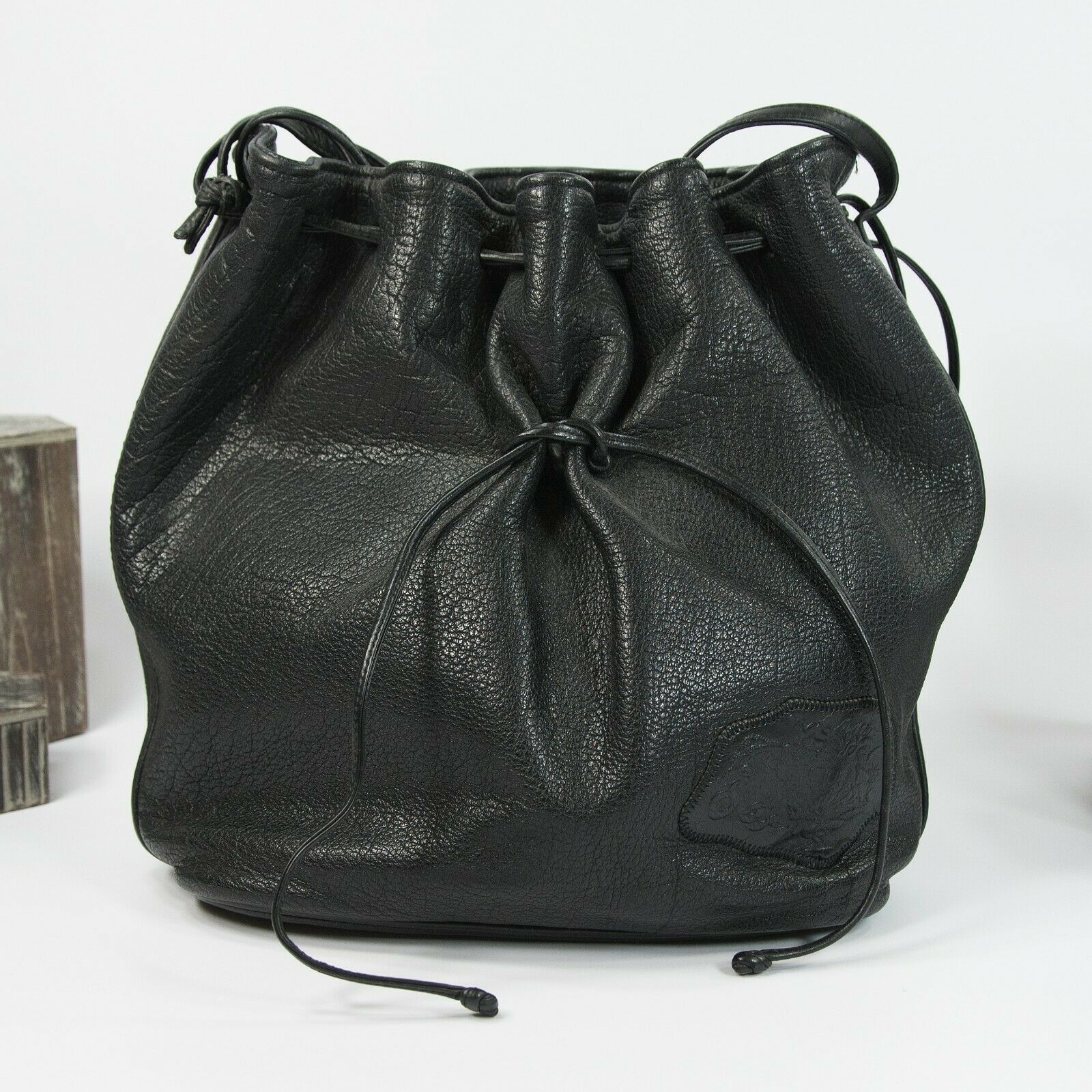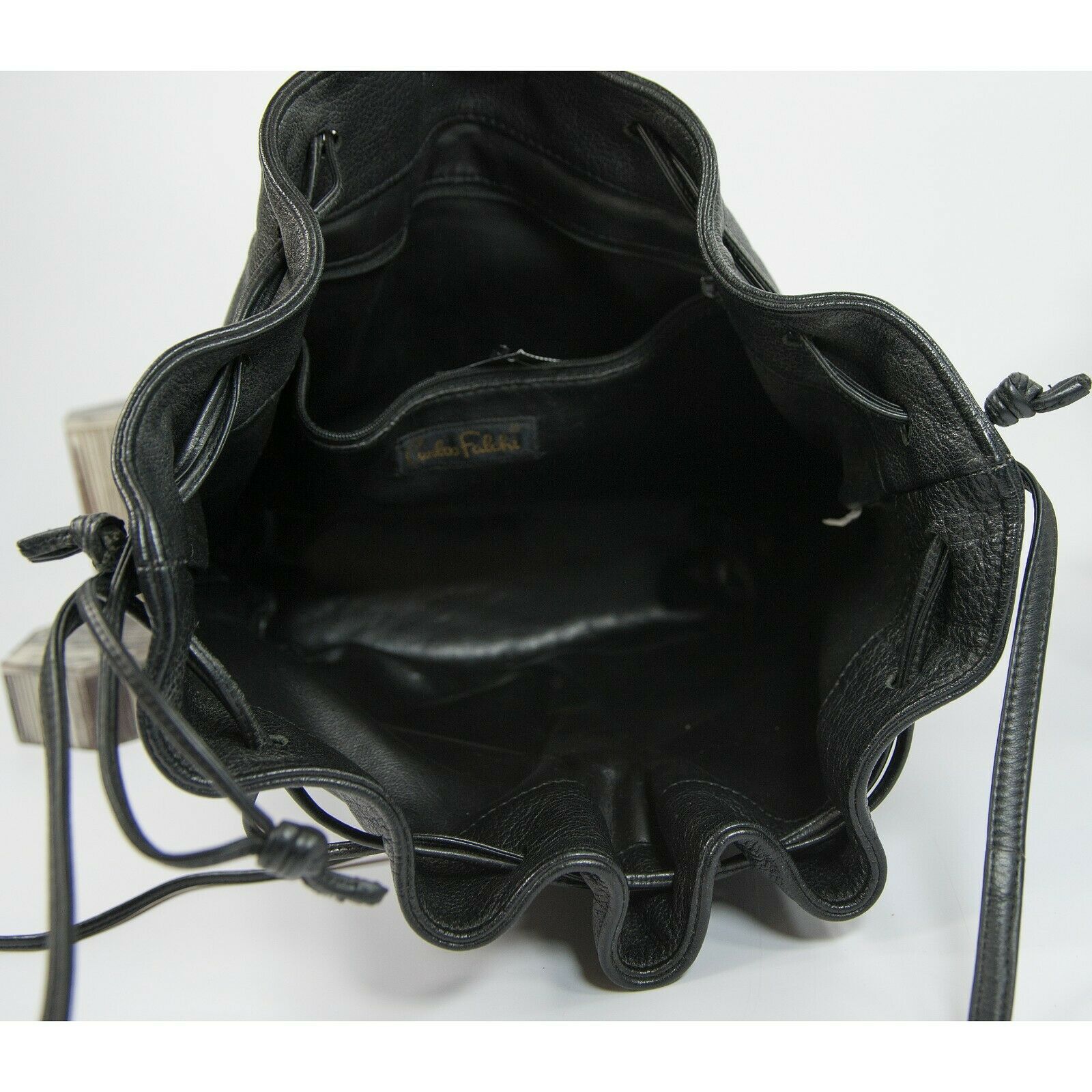 Carlos Falchi Black Leather Drawstring Bucket Shoulder Crossbody Bag EUC