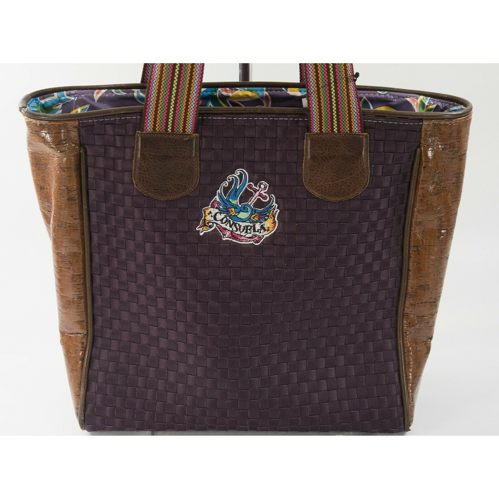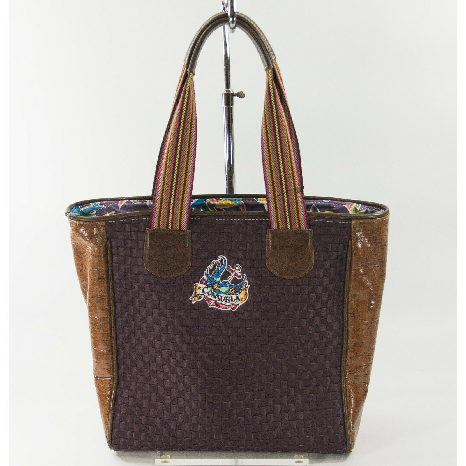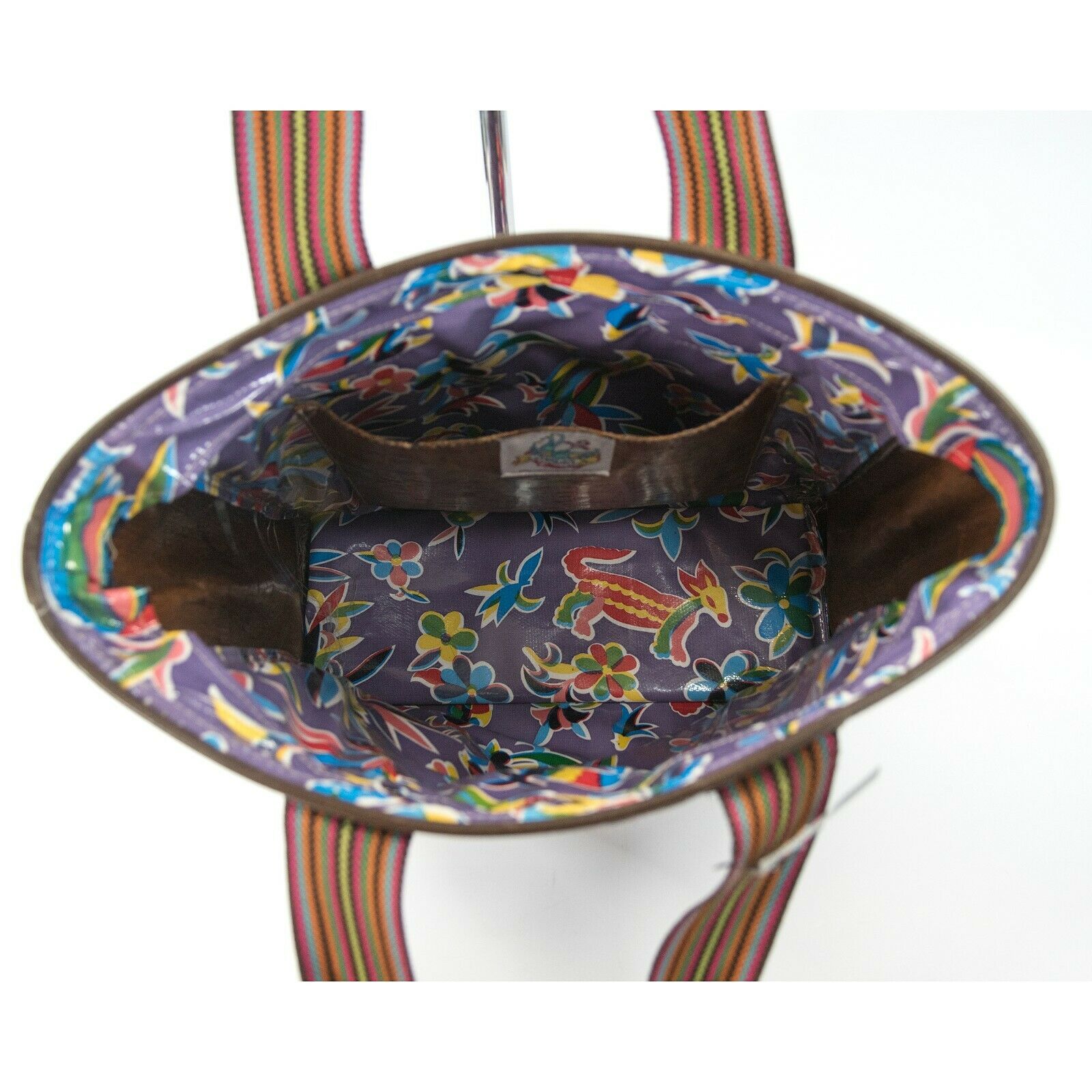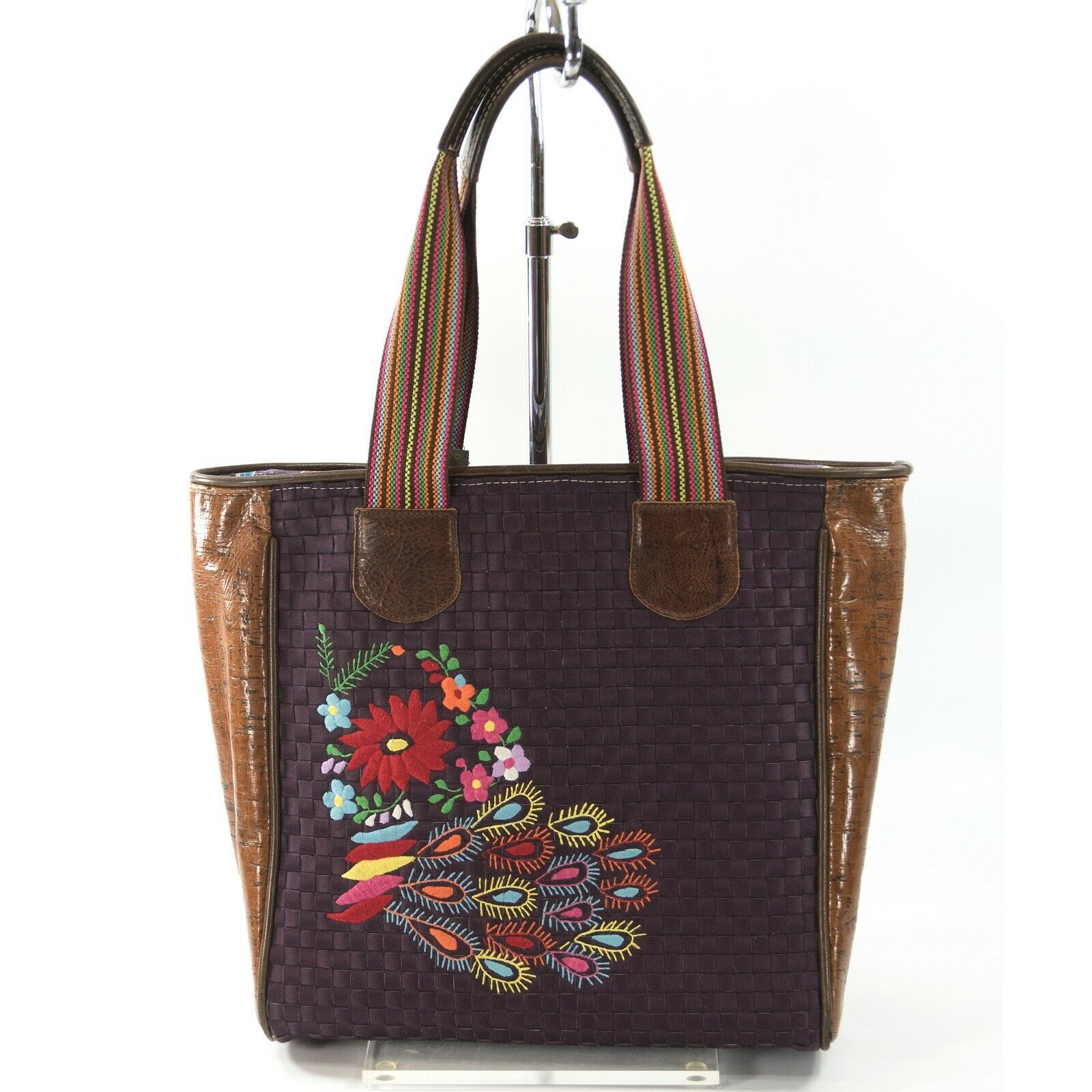 Consuela Austin Purple Woven Twill Floral Embroidered Leather Large Tote Bag NWT