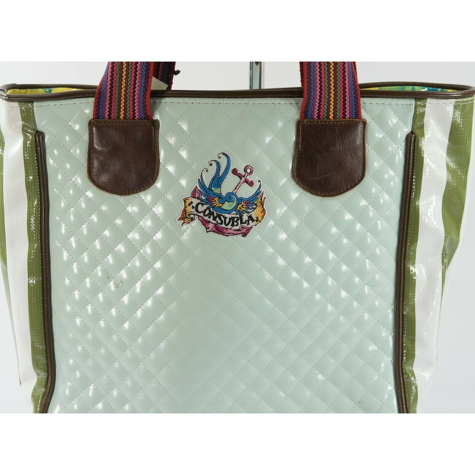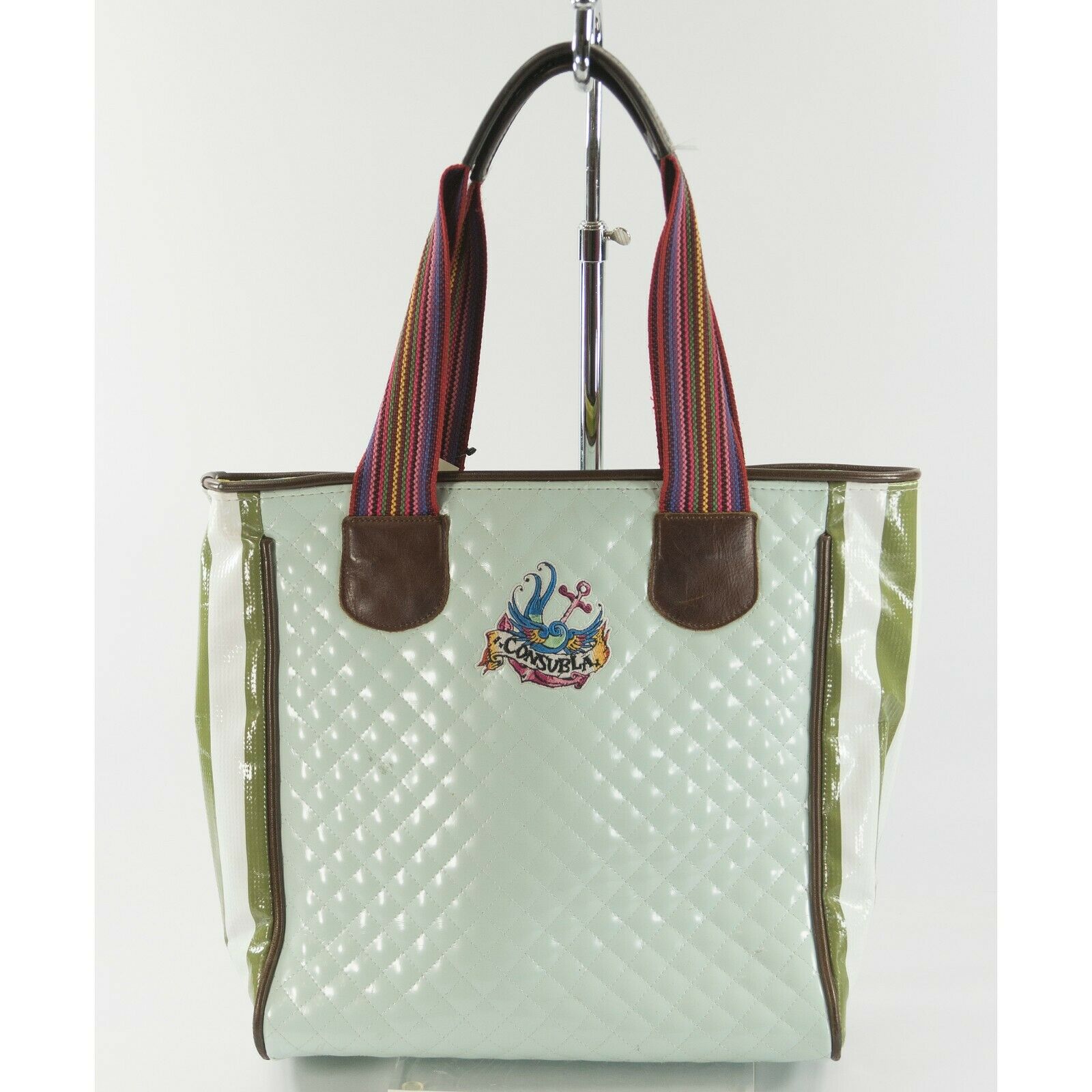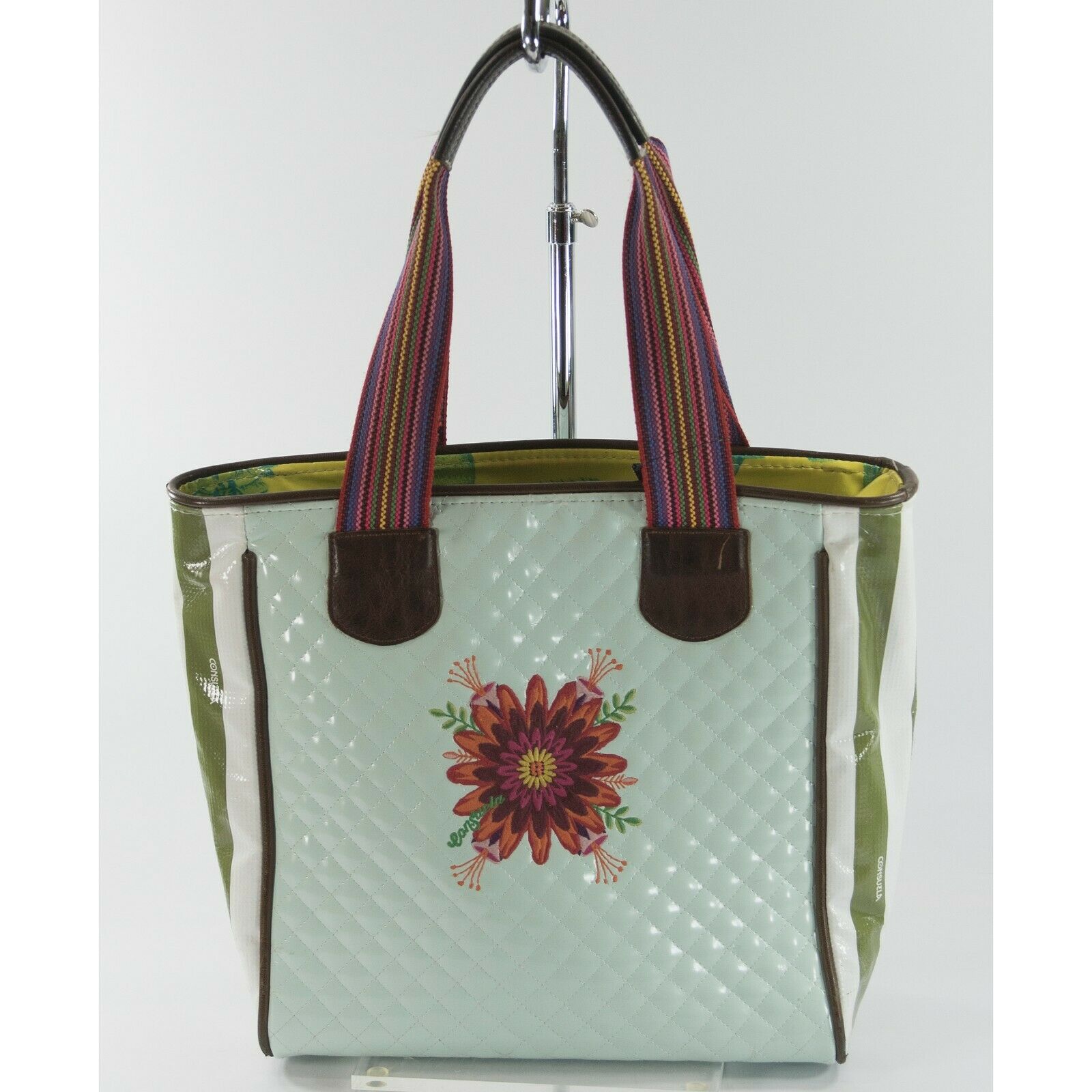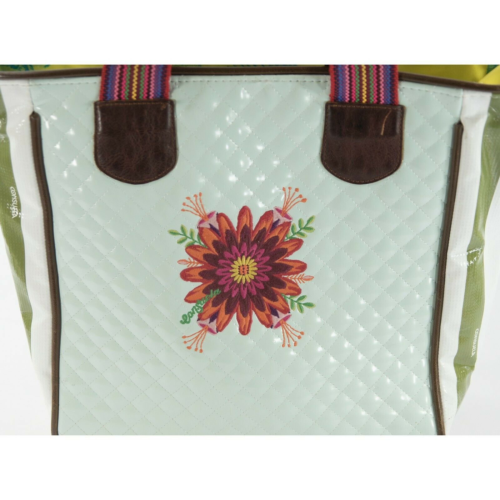 Consuela Austin Sophie Mint Floral Embroidered Leather Large Tote Bag EUC