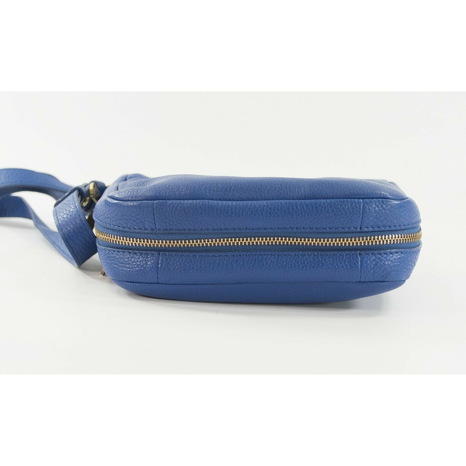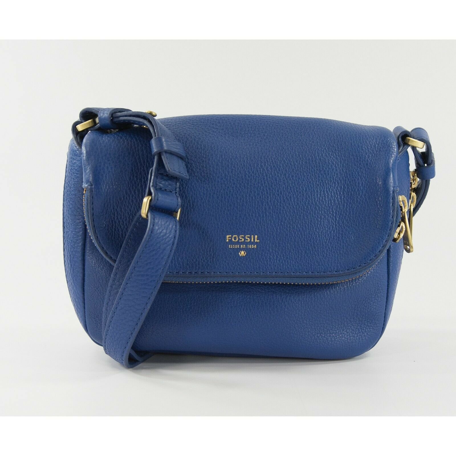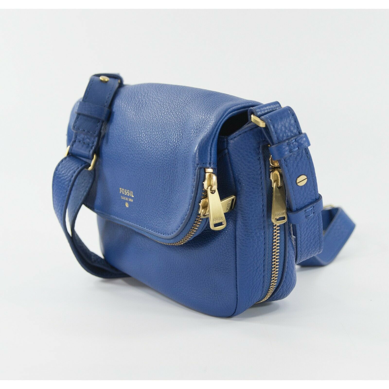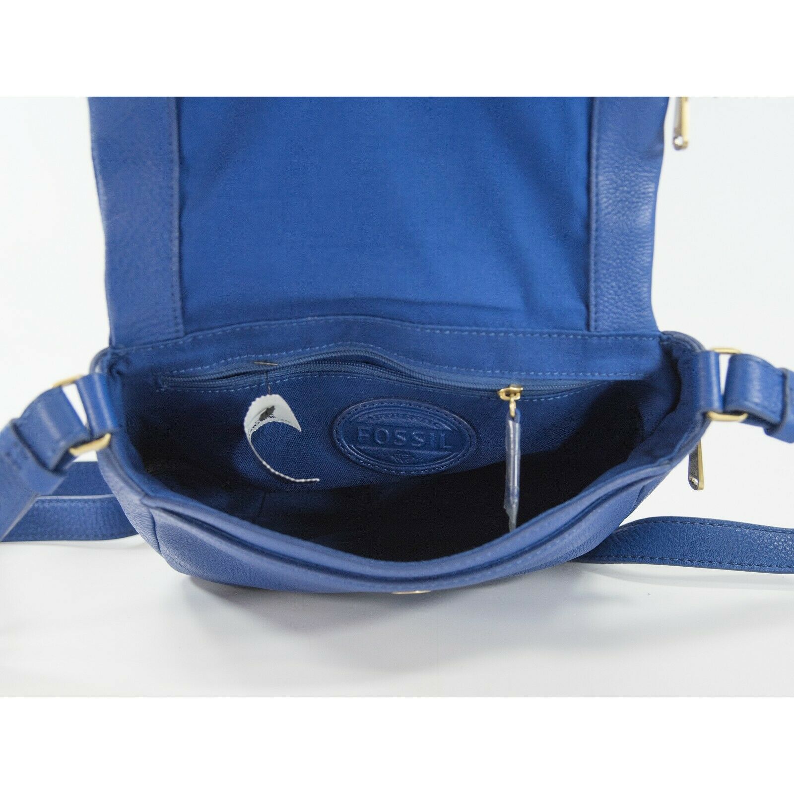 Fossil Blue Pebbled Leather Flap Expandable Crossbody Bag EUC