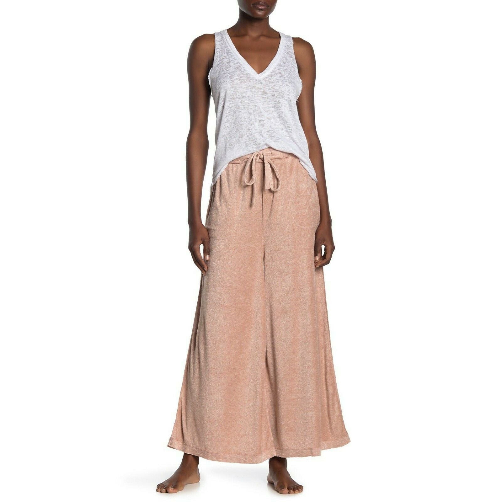 Free People Make It Maxi Wide Leg Terry Lounge Pants Clay NWT S
