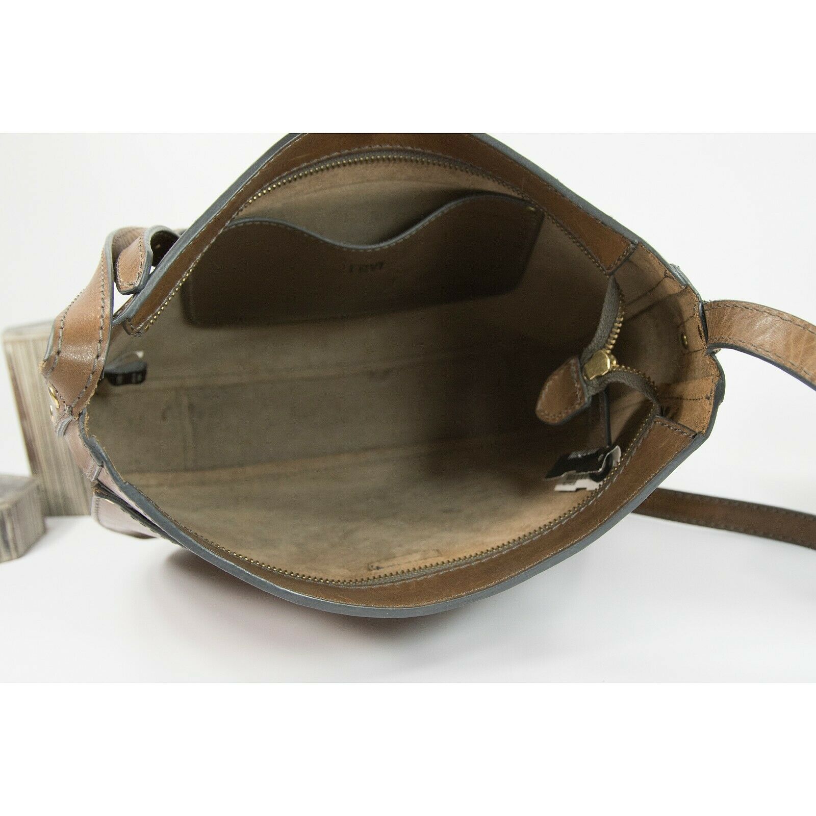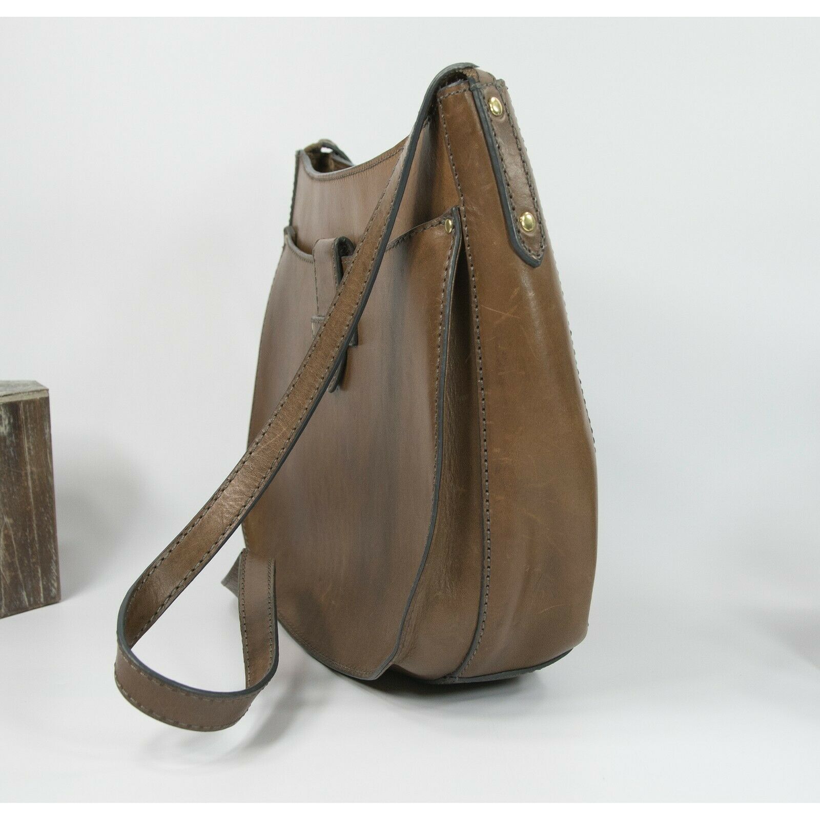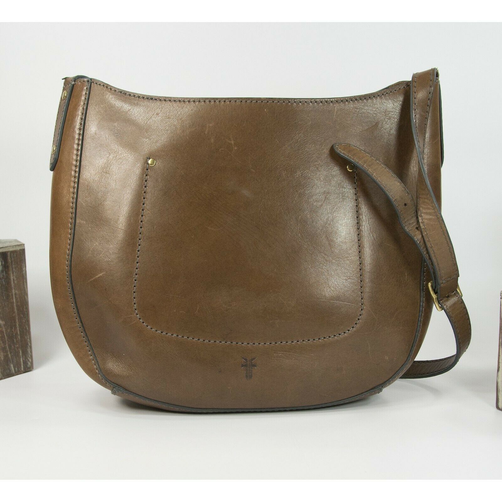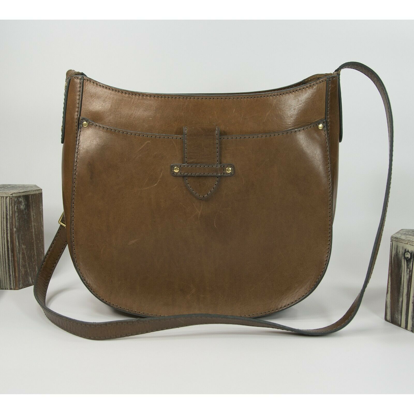 Frye Vintage Brown Smooth Distressed Leather Hobo Saddle Crossbody Bag EUC