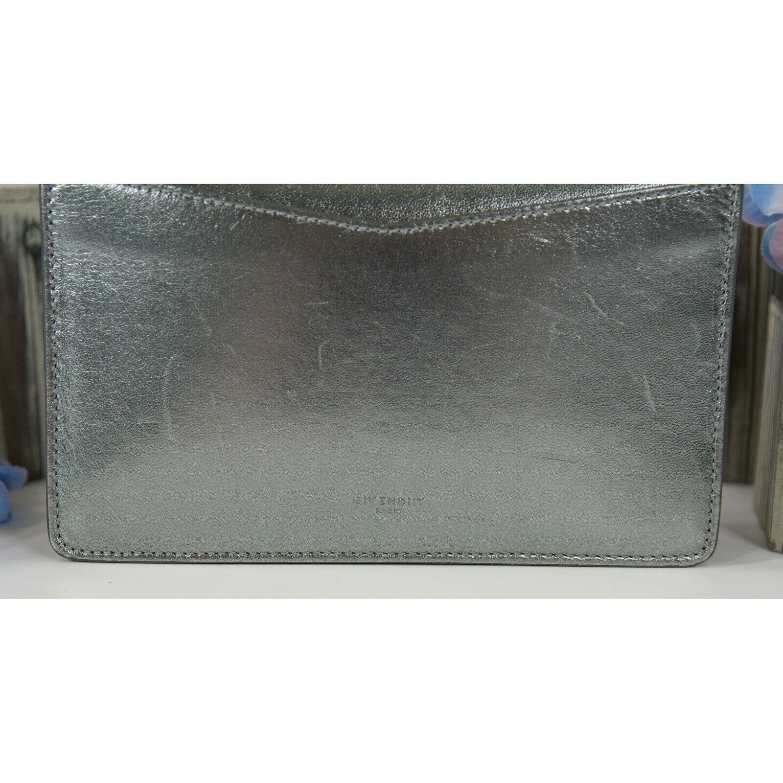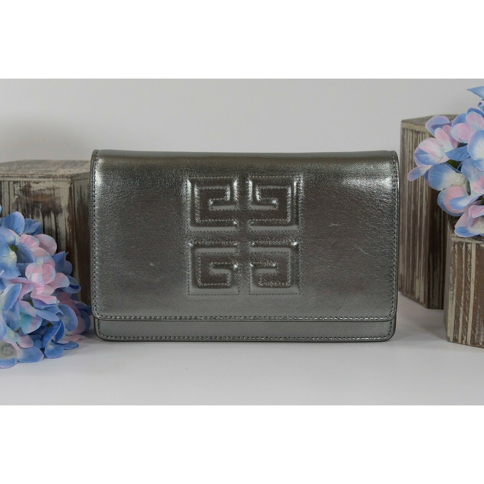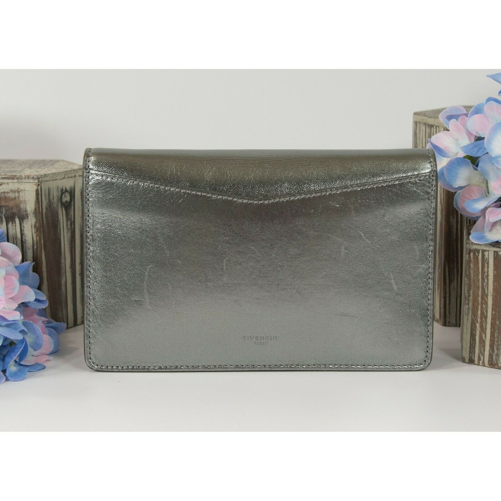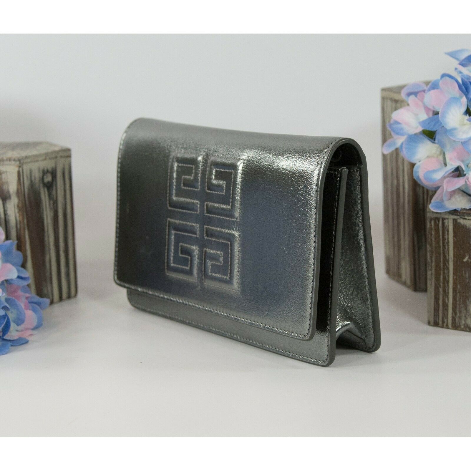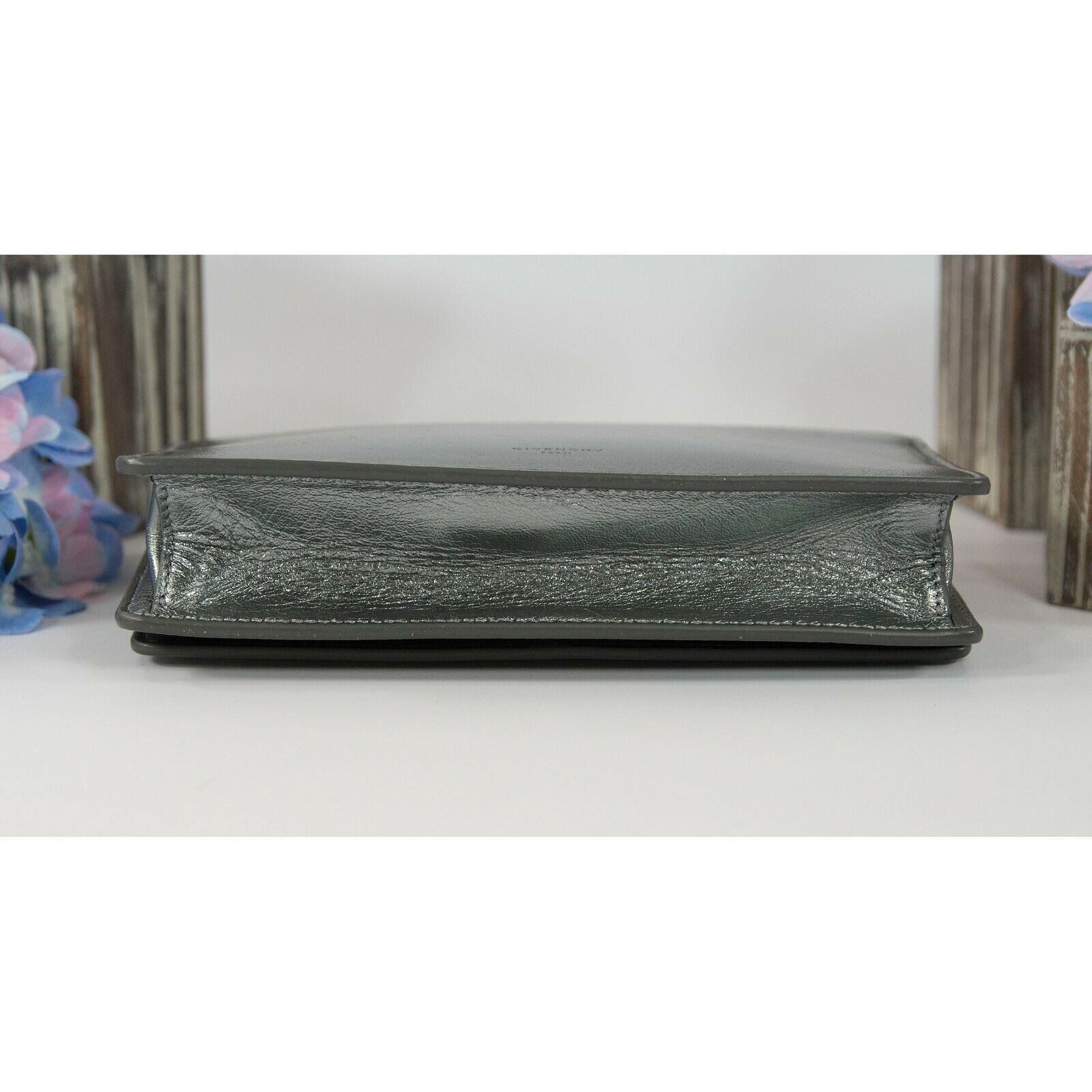 Givenchy Gunmetal Metallic Pandora Lambskin Leather Clutch Crossbody Bag