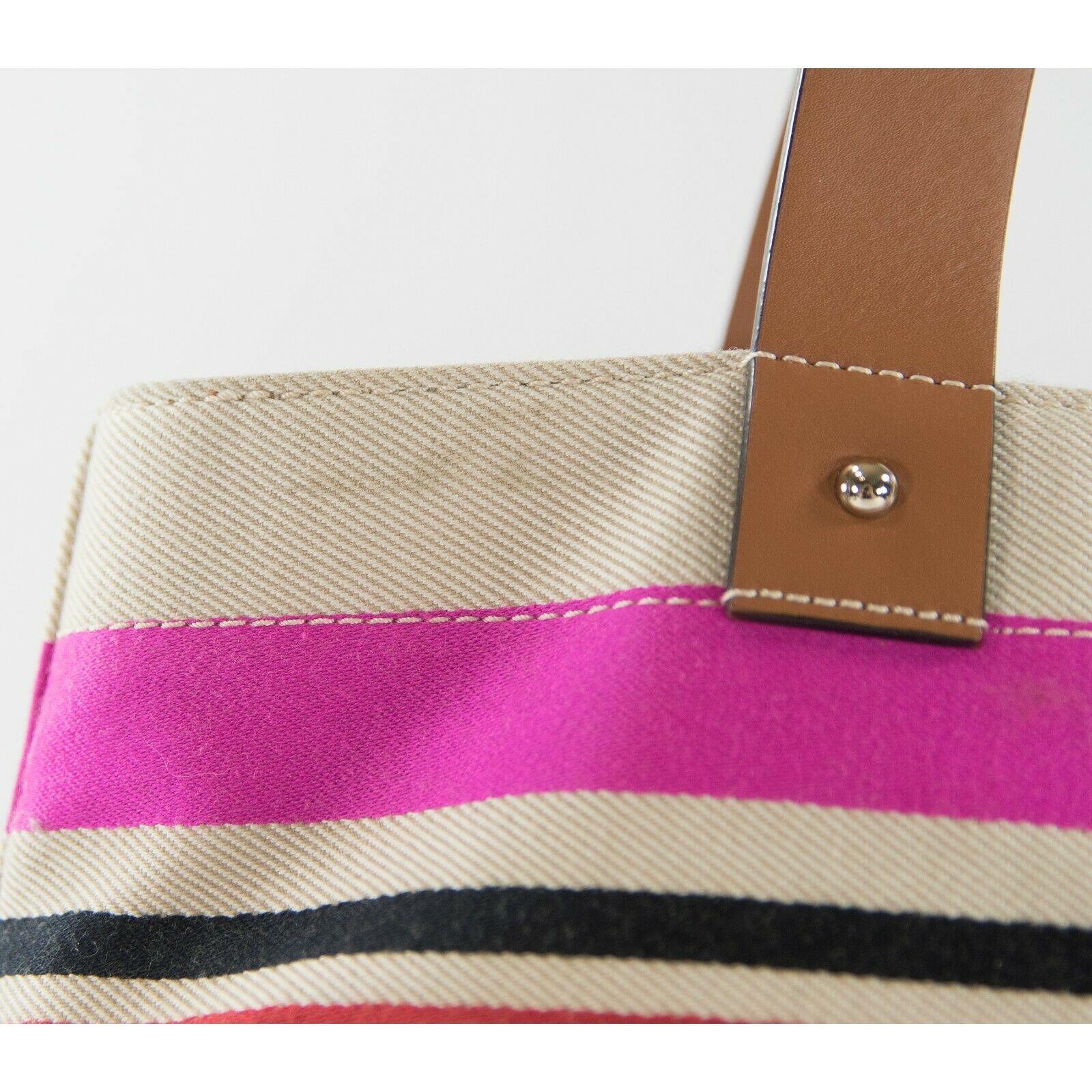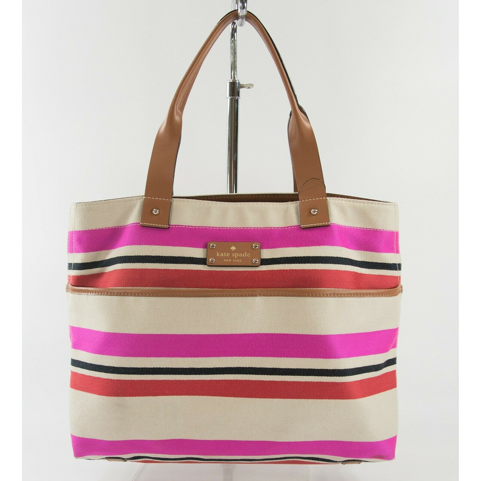 Kate Spade Oak Island Canvas Stripe Leather Trim Magazine Tote Bag GUC