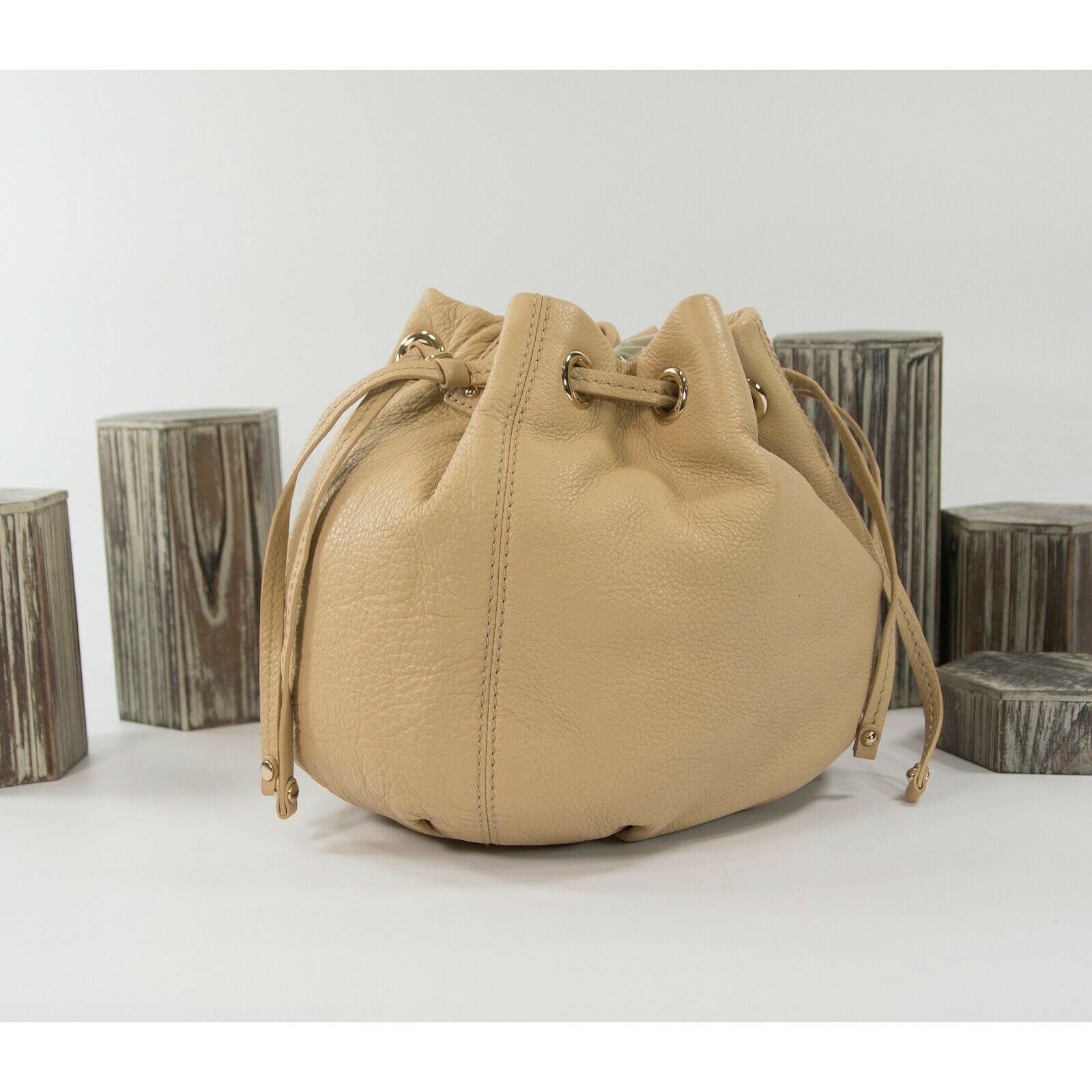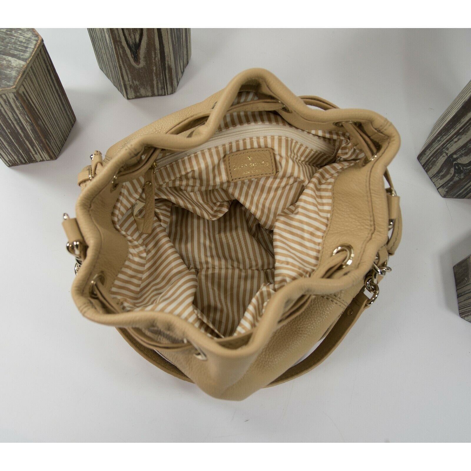 Kate Spade Peanut Leather Cobble Hill Katie Drawstring Pouch Bag EUC