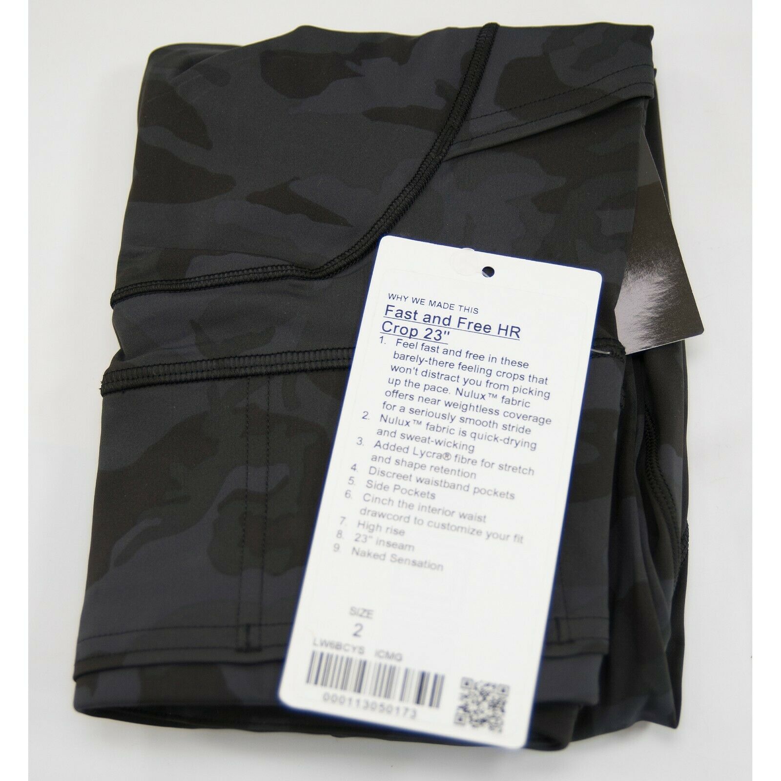 Lululemon Black Camo Fast Free HR Crop 23" Tight Fitted Leggings NWT Size 2