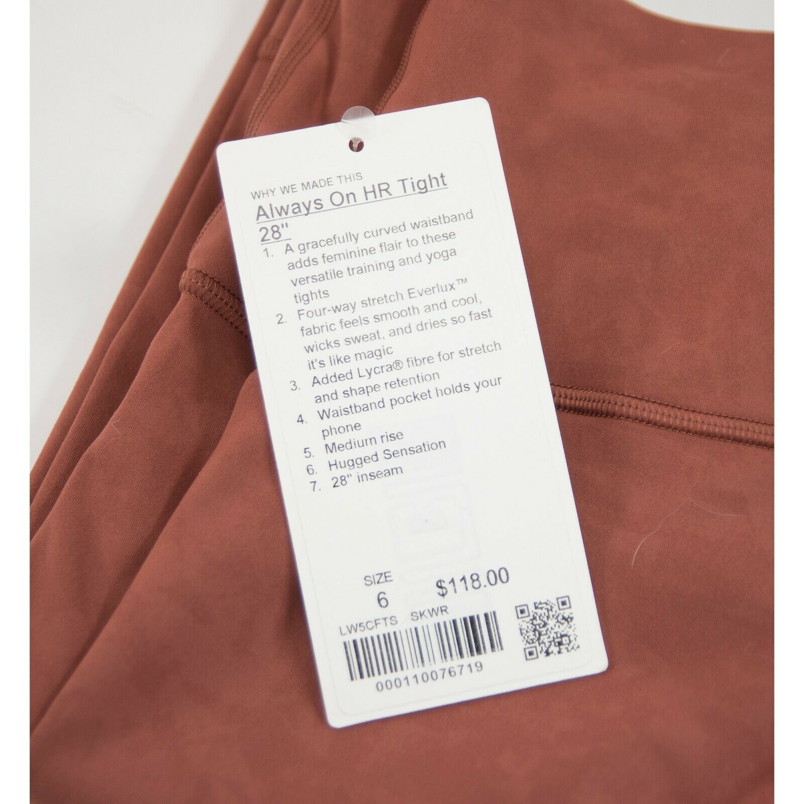 Lululemon Rust Soft Always On HR Split Waist Tight Fitted Leggings NWT Size 6