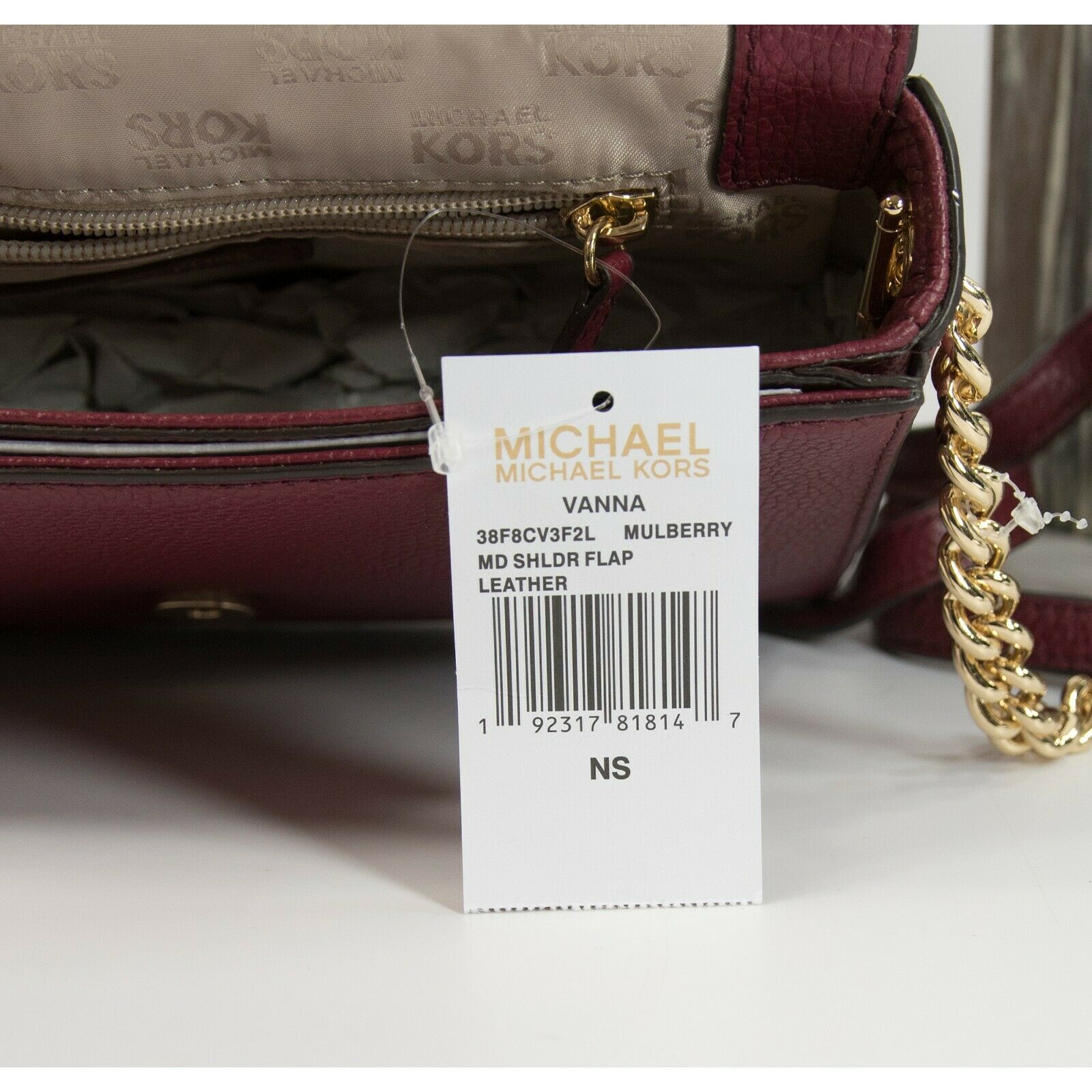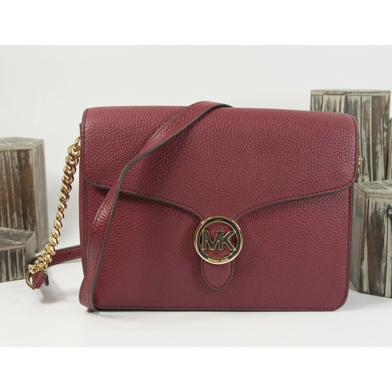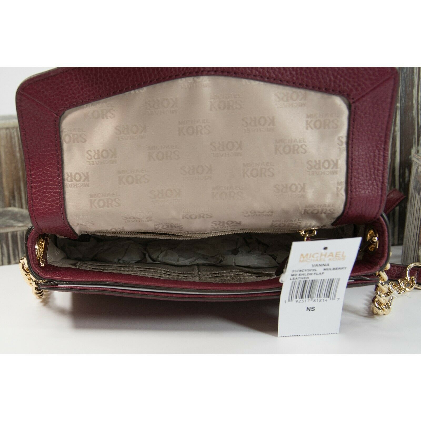 Michael Kors Mulberry Leather Vanna Medium Shoulder Flap Bag NWT
