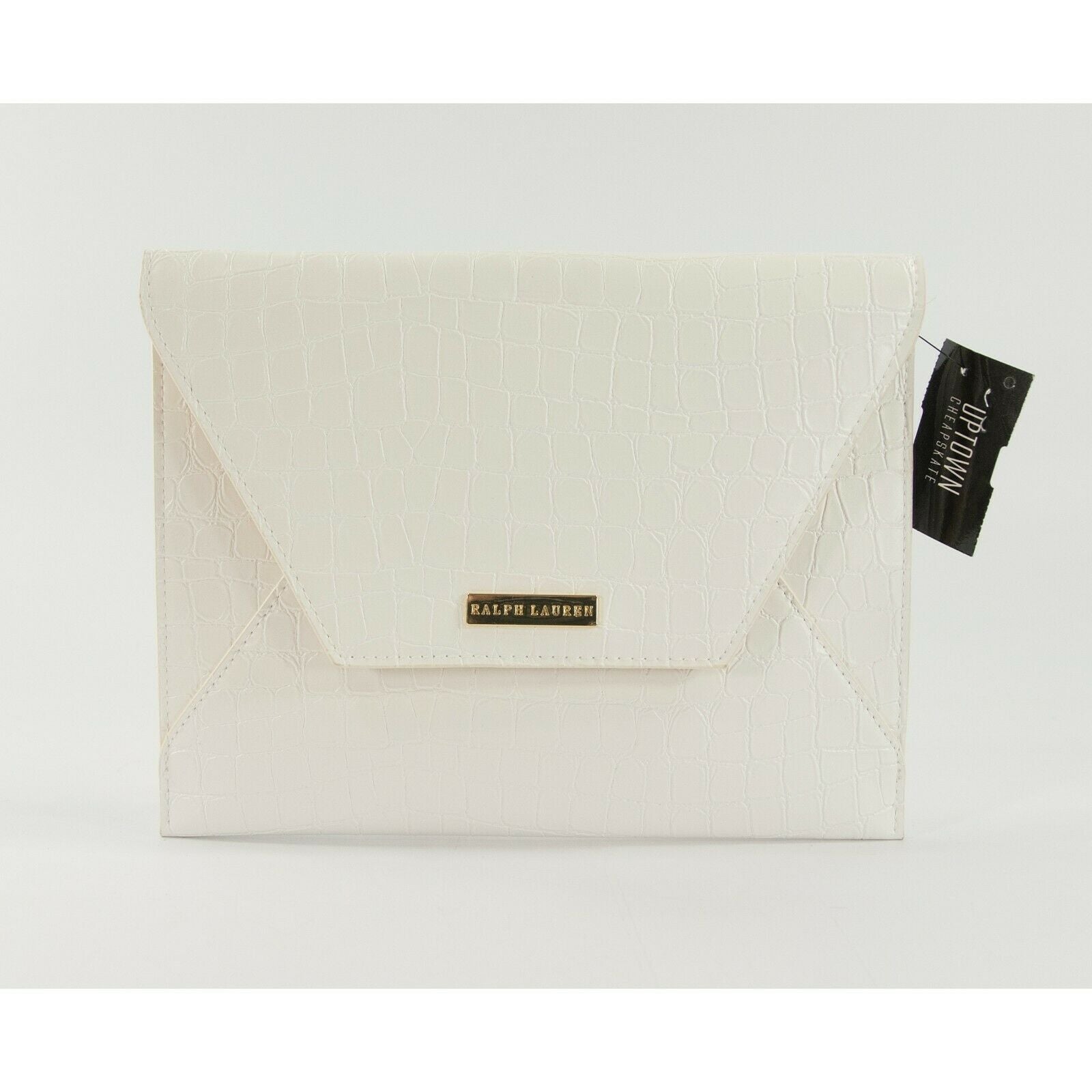 Ralph Lauren White Croc Envelope Large Pouch Clutch Bag NWT