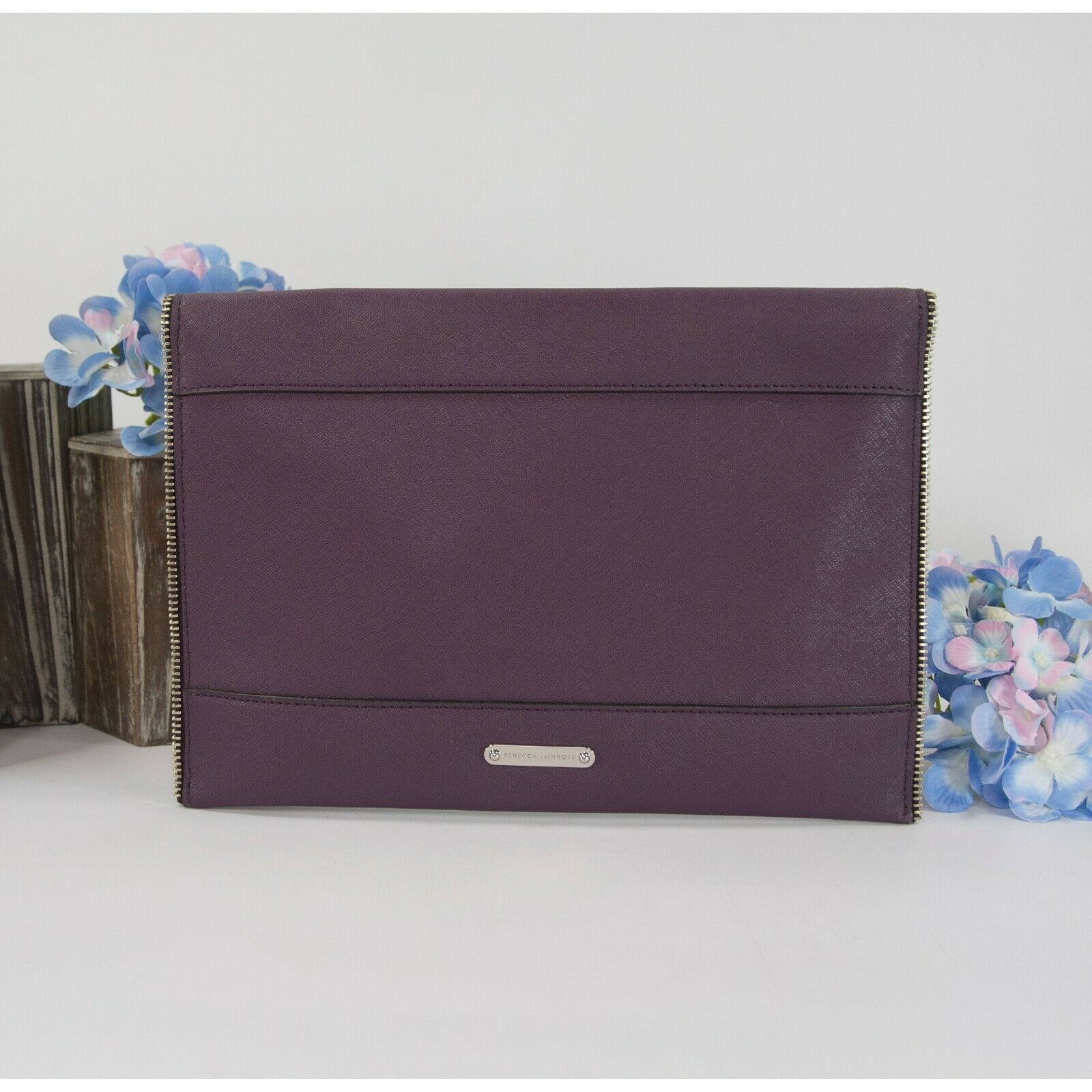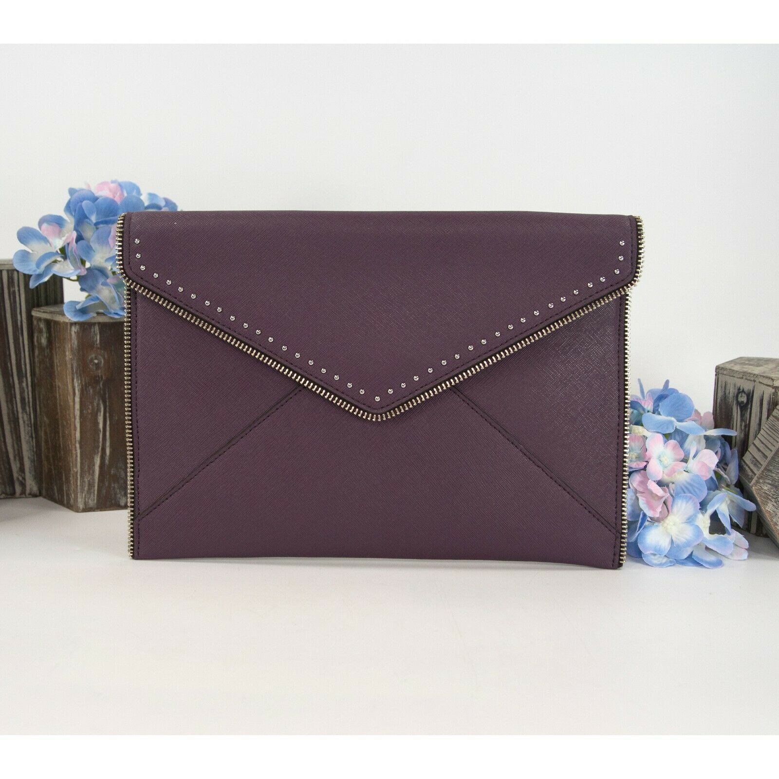 Rebecca Minkoff Leo Blackberry Saffiano Studded Large Clutch Bag NWT