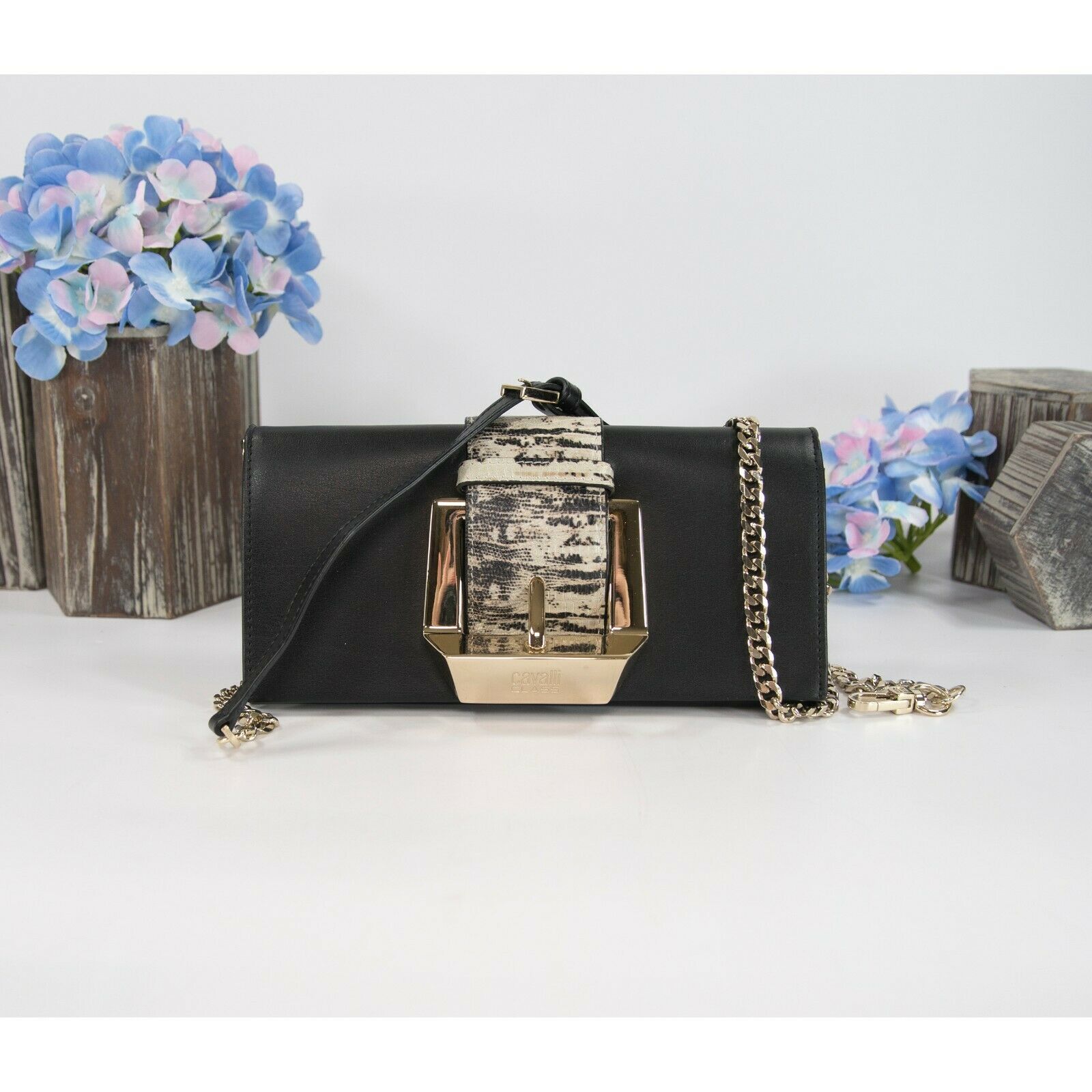 Roberto Cavalli Class Black Lizard Leather Glam Belt Crossbody Clutch Bag EUC