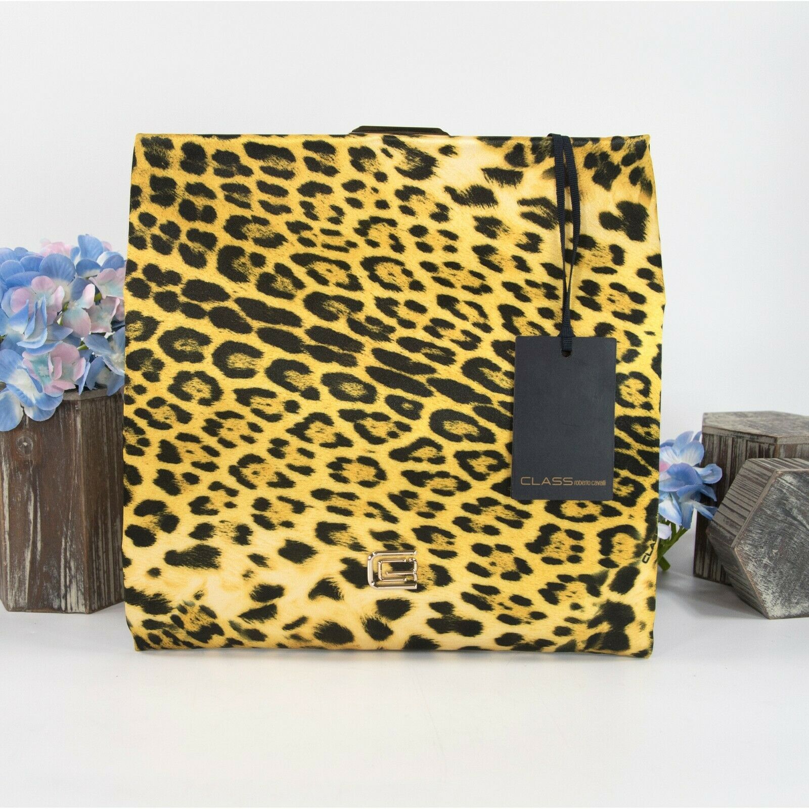 Roberto Cavalli Class Satin Leopard Flat Frame Clutch Bag NWT