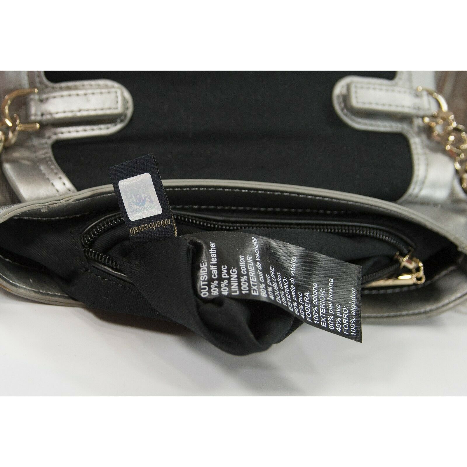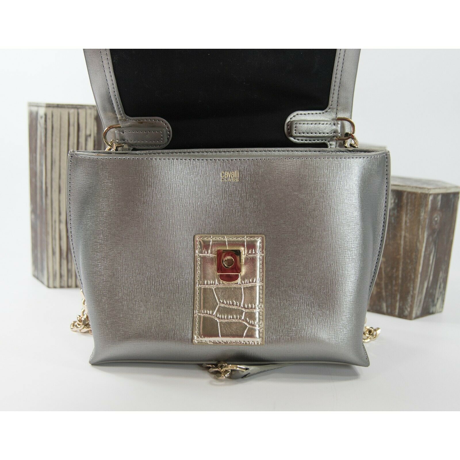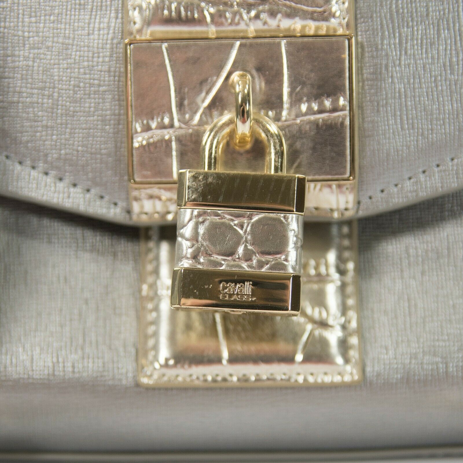 Roberto Cavalli Class Silver Leather Padlock Crossbody Bag EUC