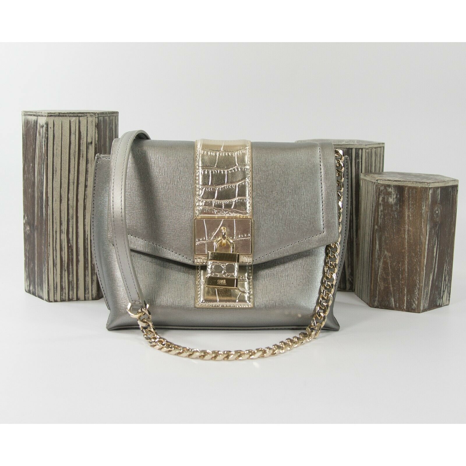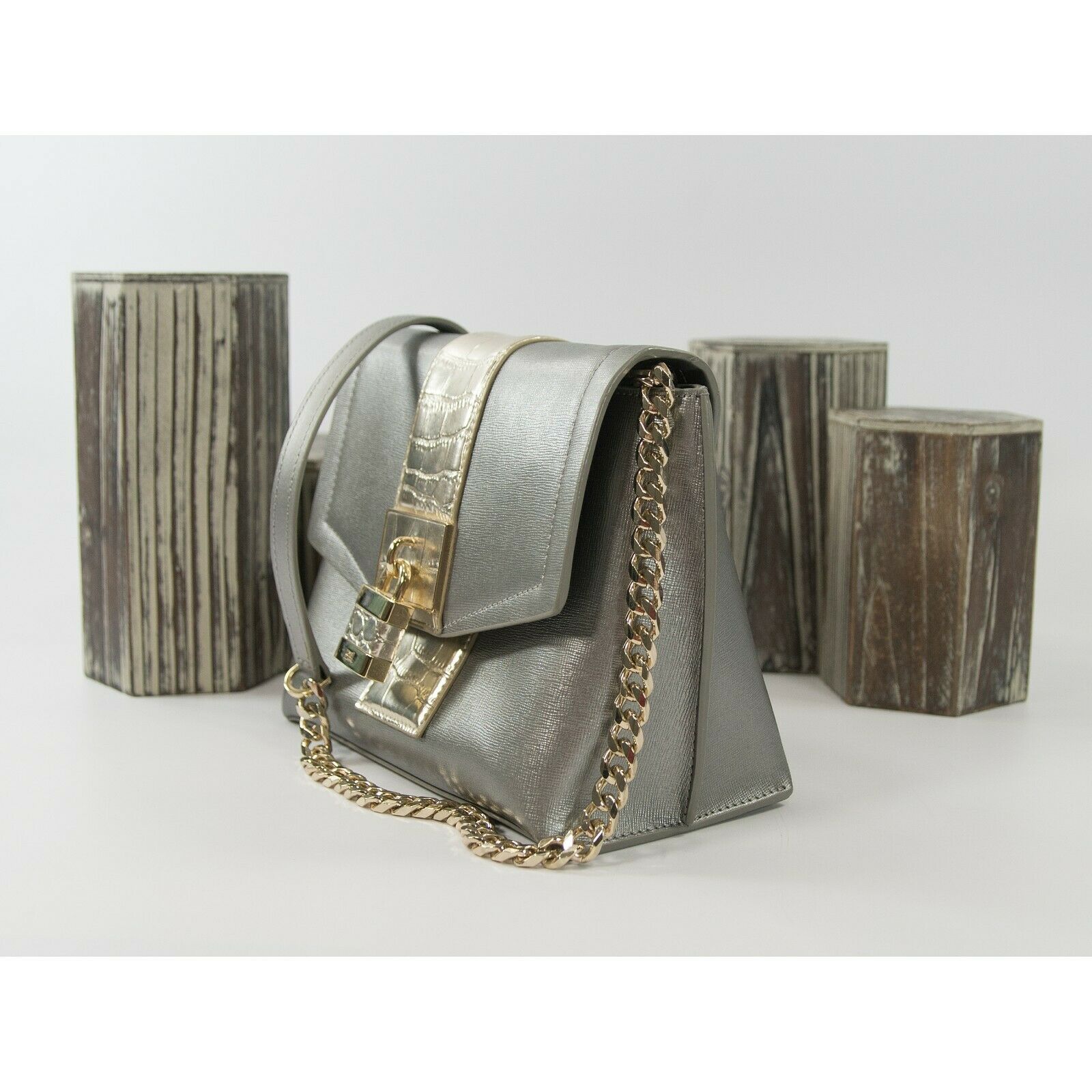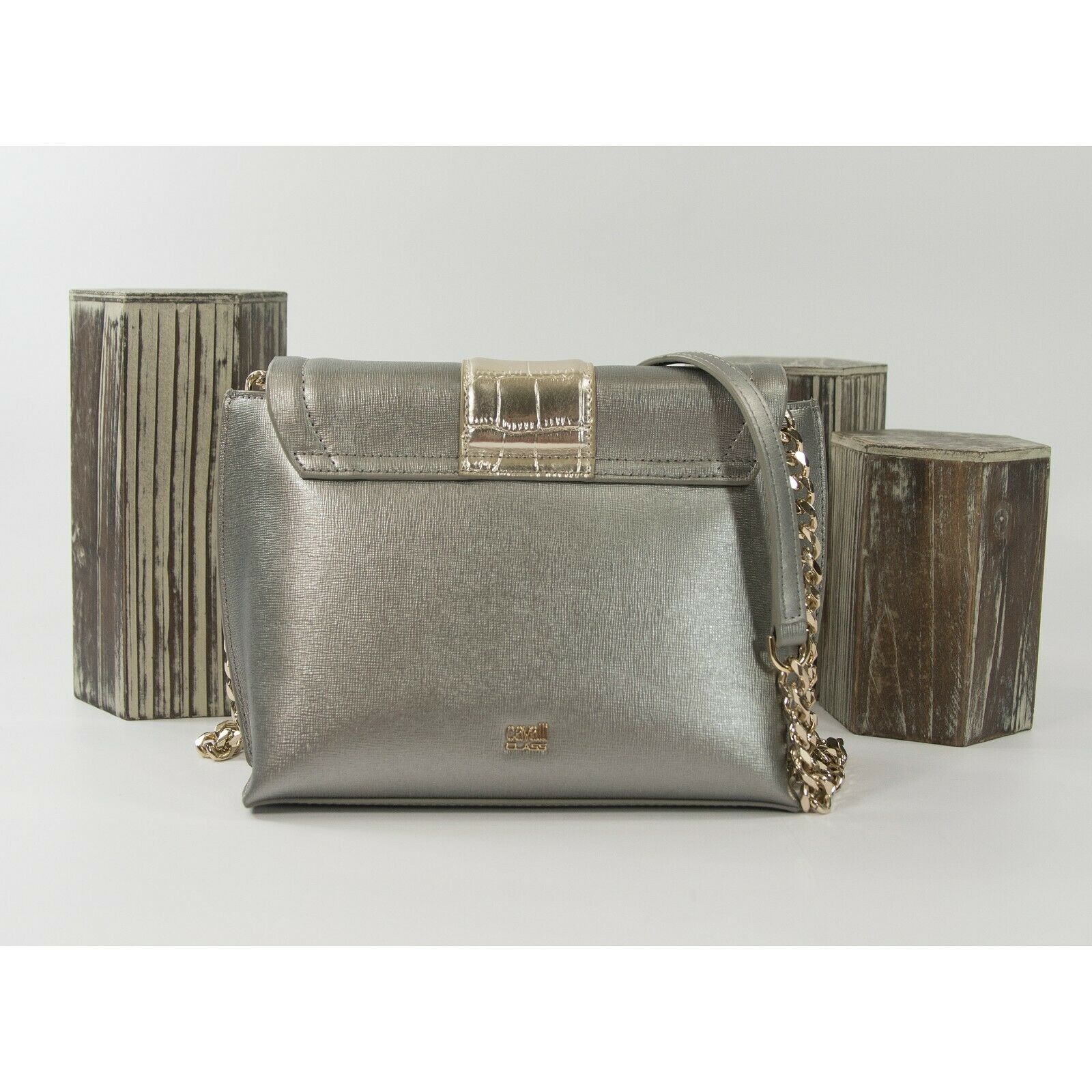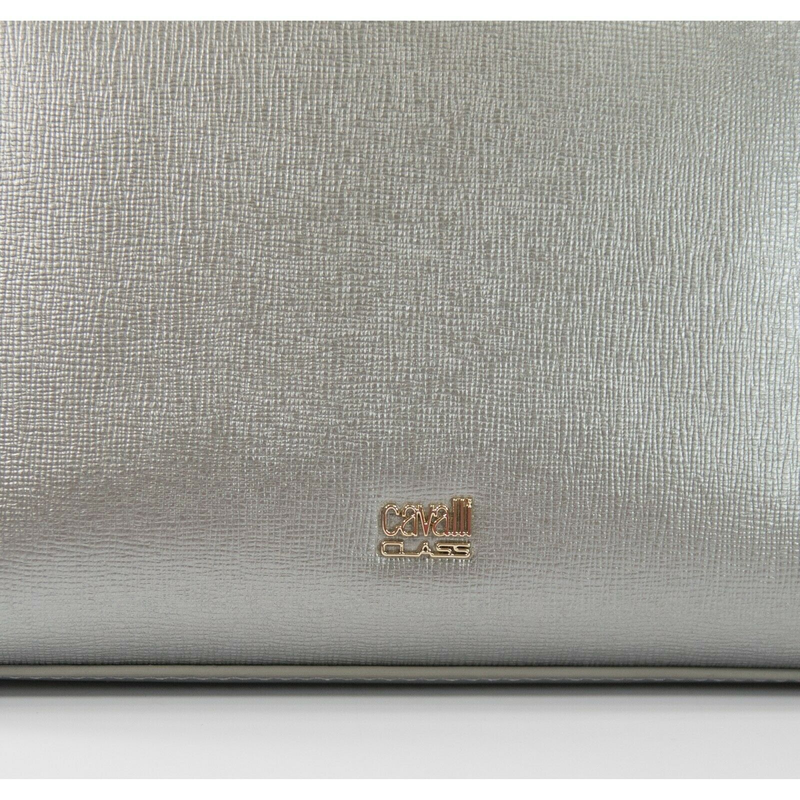 Roberto Cavalli Class Silver Leather Padlock Crossbody Bag EUC